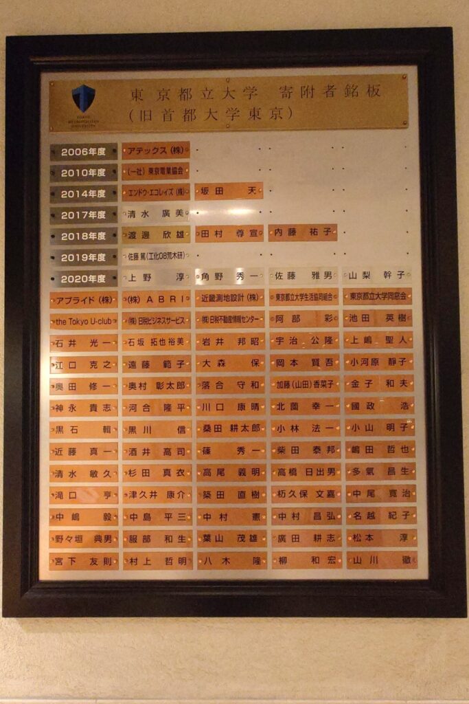東京都都立大学へのご寄附の累計額が合計10万円以上の個人の方、合計50万円以上の法人の方につきましては、WEB上でご覧いただける高額寄附者WEB銘板にもご芳名を記し、末永く顕彰させていただきます。