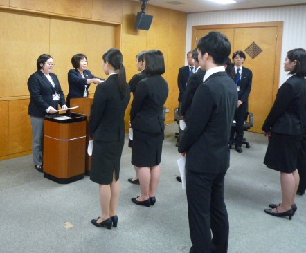 4년 1월 XNUMX일에 정규 직원으로서 채용될 예정의 내정자에게, 오야마 아키코 사무국장으로부터 내정 통지서가 수여되었습니다.