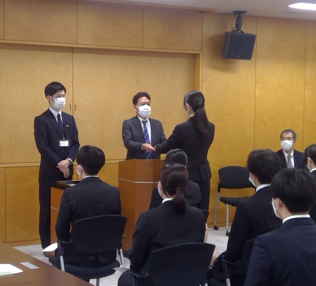 5년 4월 1일에 정규 직원으로서 채용될 예정의 내정자에게, 가토 사무국장으로부터 내정 통지서가 건네졌습니다.